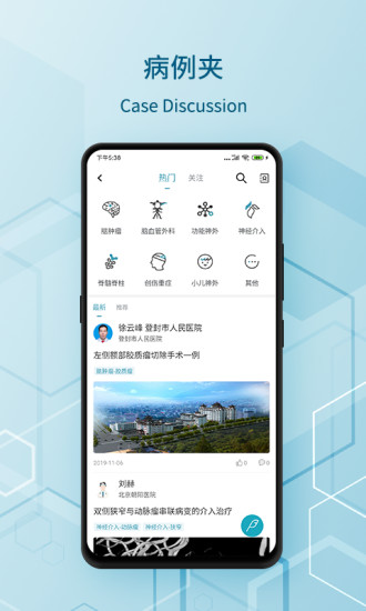 病例讨论:为神经外科医生提供一个平台,可以自行上传病例,医生可上传临床医学病例相关的CT和MRI图片、医学视频、文献,邀请同行进行评论互动和学习交流。