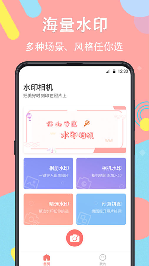 丰富多彩的水印 模板,自定义水印、位置水印、心情水印,更有各类新颖美图玩法,将“美好故事”铭刻于照片之上!