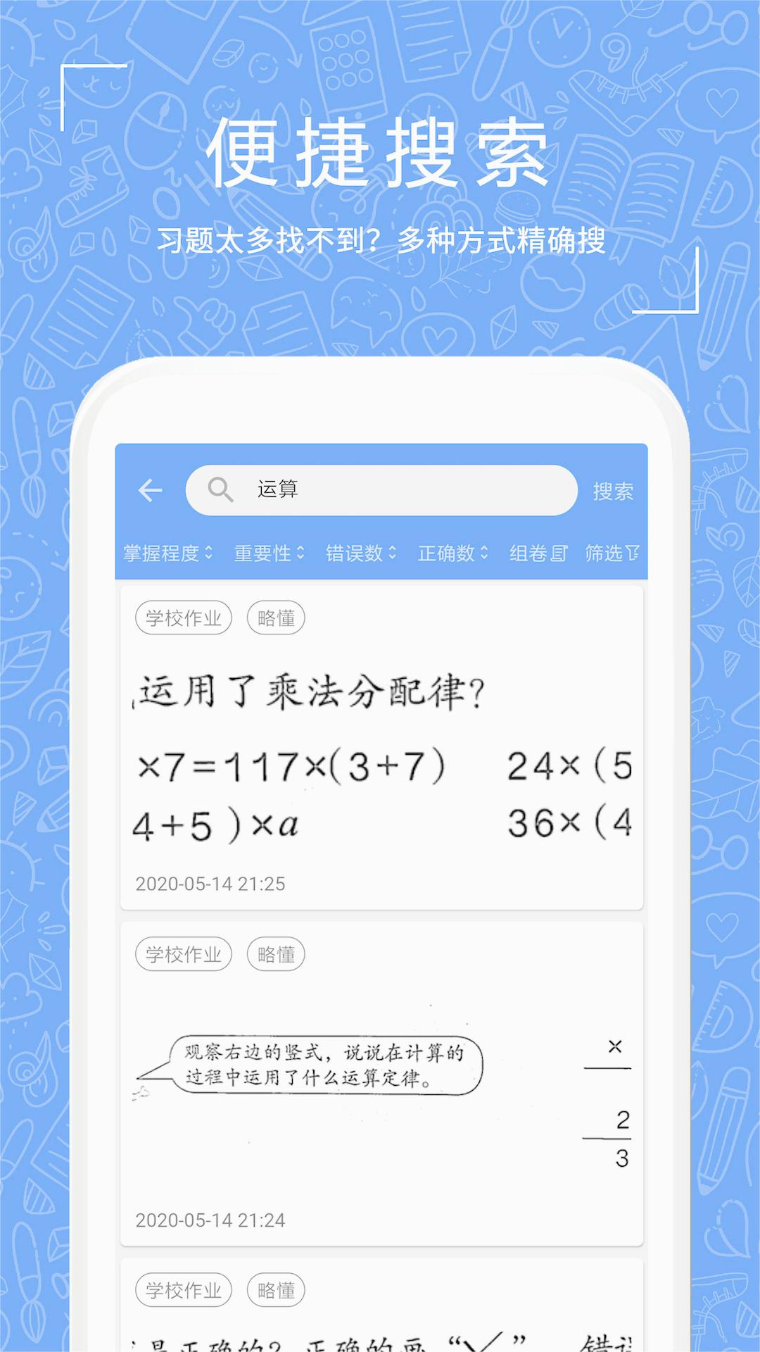 这是一款专为错题反复练习与强化记忆而设计的学习工具,能够轻松拍照、上传试题,便于收集、归纳与检索,还支持打印试题,反复练习并对照答案进行批改,帮助孩子们养成优秀的学习习惯。