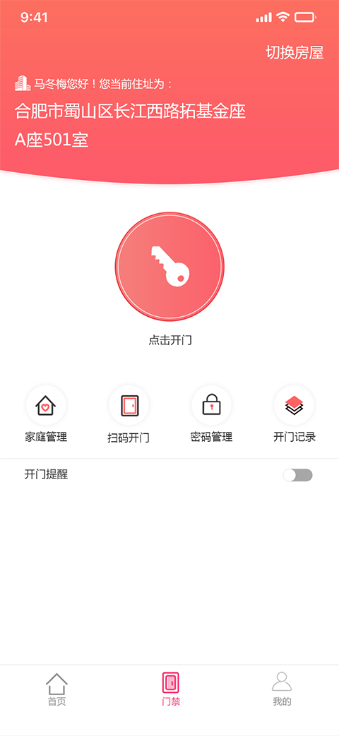 【一级导航】命名优化【首页】导航页面及内容整体改版,【门禁】导航内容及功能进行了优化整改,新增了绑定房屋入口及信息,优化了开门及房屋账单查询操作【门禁管理】新增家庭成员功能优化【版本更新】提醒进行了优化【我的】导航新增【用户反馈】【常见问题】【呼叫客服】【版本切换】功能。