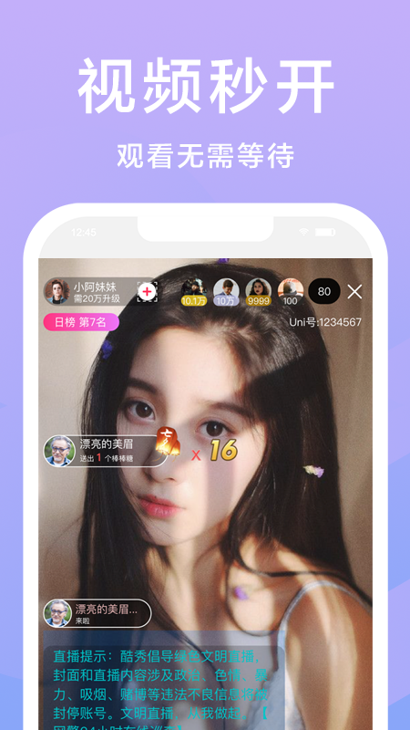Uni有你,寻找有趣的灵魂;交友与直播互动的理想平台。