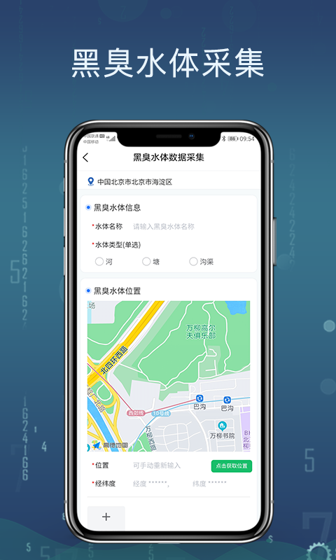 此应用可便捷地现场采集农村黑臭水体的数据,无需笨重的数据采集设备;
