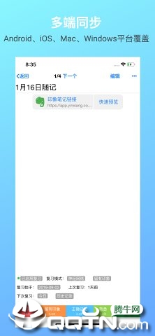 怀旧是一款移动端笔记软件。通过主流算法,将每日工作与生活中需要重复回顾的片段,按照固定的时间间隔进行回忆,实现简单、高效的记忆方式,助您将这些珍贵的记忆深深地刻在心间。