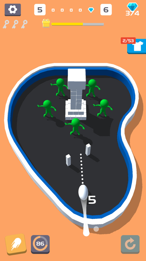 5、操作小球,瞄准目标,蓄力、发射!摧毁关卡中所有的物体!