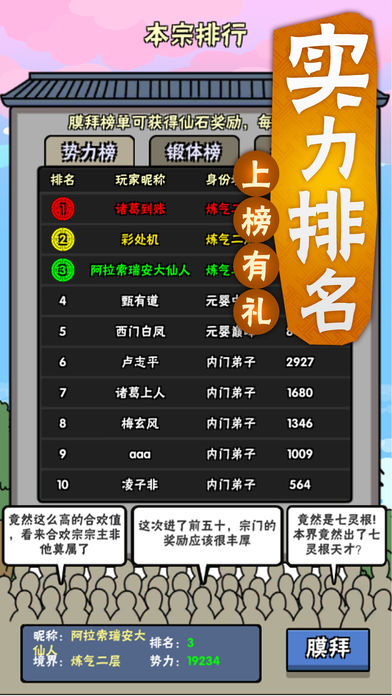 1、通过完成各宗门的任务来获取丰厚奖励;