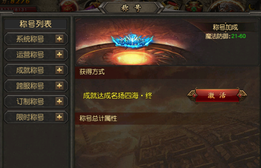 称号分为系统称号、运营称号、成就称号、跨服称号、定制称号及限时称号六大类。每一种称号均可为提供不同的增益,具体称号的加成效果与获取方式,皆可在游戏中一探究竟哦~