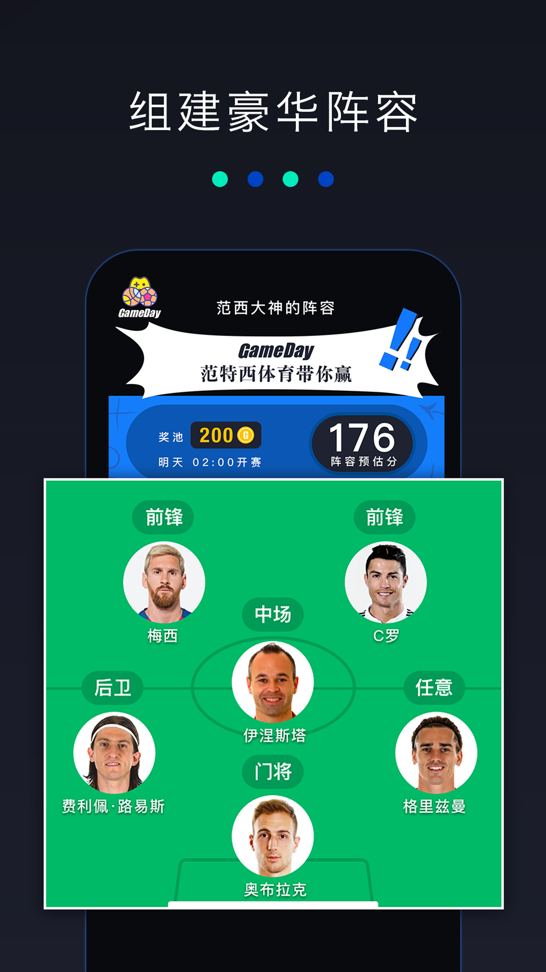 1、选择您喜爱的球星与选手,自由组建独特的阵容。