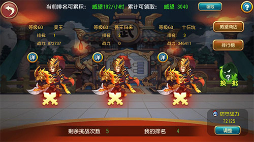 玩家获得的威望可在威望商店兑换将领碎片或道具。