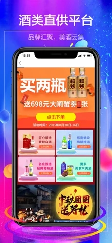 1919吃喝app,掌中酒类直销平台。软件汇聚了多种酒类品牌,各式新品实时上架,配合后台系统,实现秒杀抢购,还有丰富的拼团等你来领取。