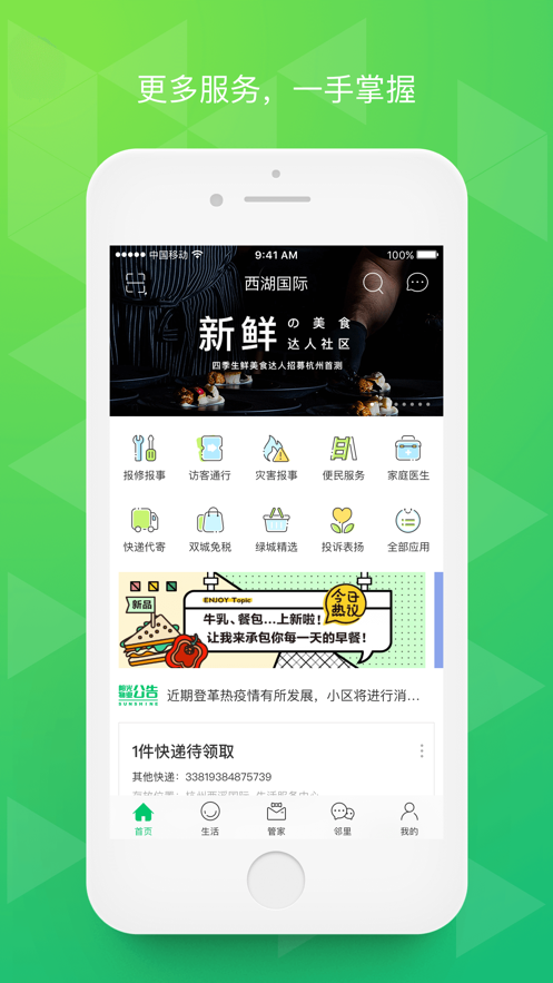 绿城生活App以维修报事、表扬、生活缴费、访客管理、快递管理等基础物业服务为根基,