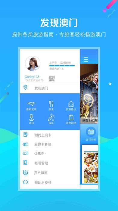 《发现澳门FindMacau》是一款旅游“导•赏”平台,将丰富而多样的信息融汇于操作的手机应用之中。配合我们的“免费4G上网卡”,为旅客带来全新的澳游体验。