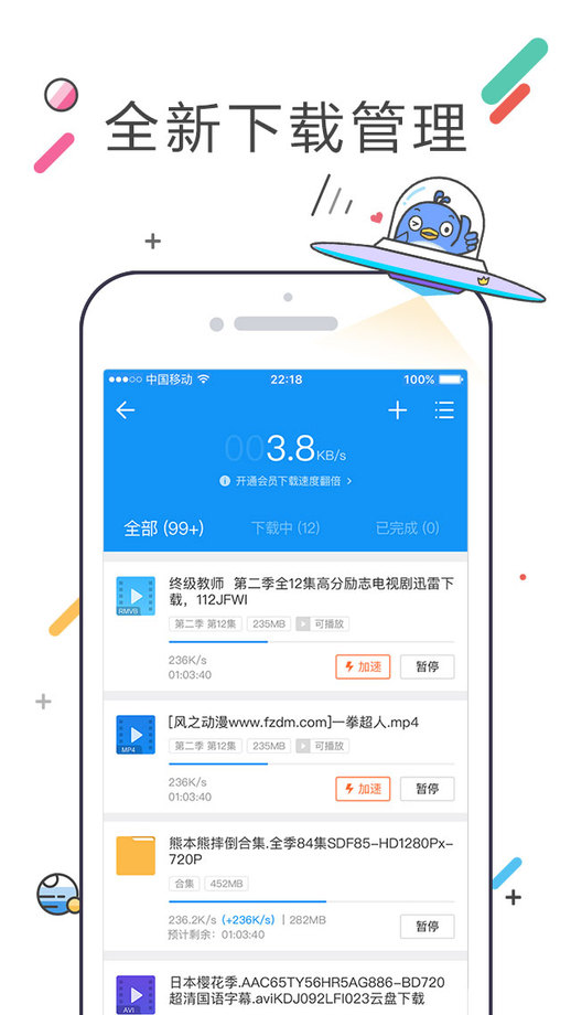 2.高速下片:独特的下载加速技术,让下载速度飞快,冷门资源的网络封锁轻松破解。