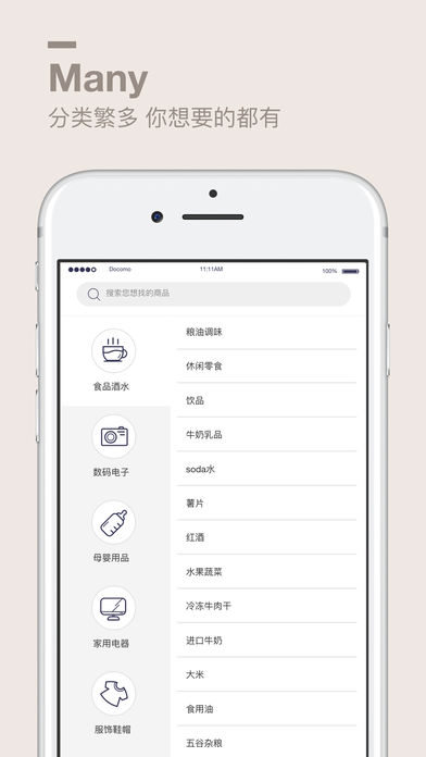 涵盖全球优质商品,涵盖母婴、美妆、家居日用、美食保健、电器、首饰、酒水等多个类别。