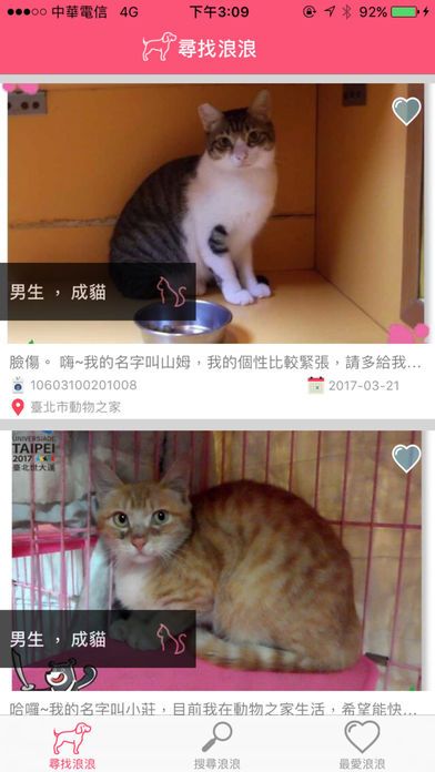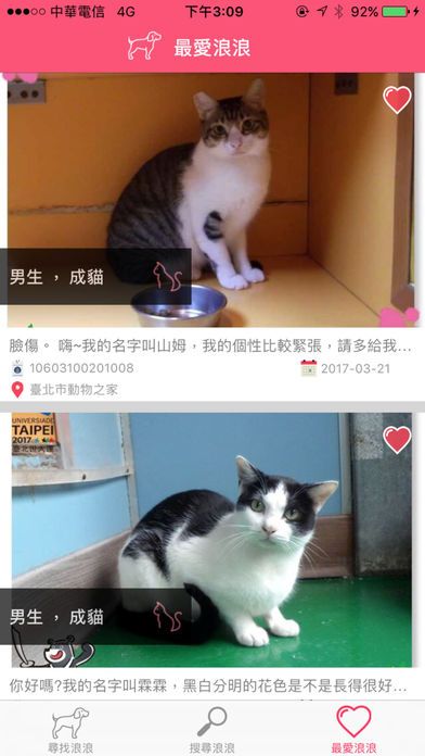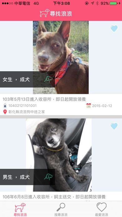 浪浪找家软件的官方手机版是一款便捷、实用、免费且专业的手机互联网宠物收容服务平台。此软件为您提供动物的基本信息与收容所的详细资料,期待收养宠物的朋友们前来下载!