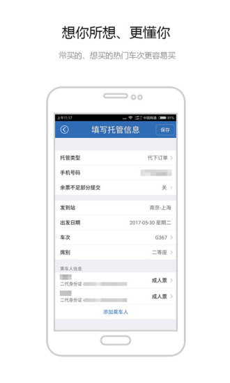 买火车票iOS版是一款极为便捷的,它直连12306官网,让您在任何时刻都能轻松托管购票。该软件小巧玲珑,功能强大,若您有需要,立刻下载体验吧!
