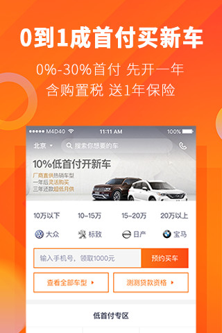 1.0到1成首付购车,厂商直供热销车型,免购置税,赠送一年保险!