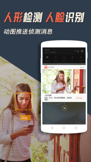 移动侦测报警功能!采用深度学习技术,掌上看家能够智能识别人形,推送报警实况GIF图,自动过滤因光线变化或虫子飞过而引起的误报。