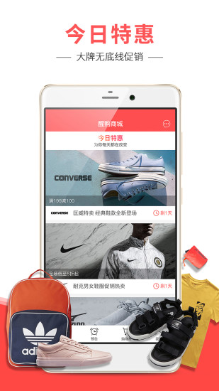 醒购商城app致力于为用户提供优质品牌特卖的互联网购物服务平台,巧妙结合传统贸易与现代移动互联网技术,汇聚本土企业的资源优势,特邀匡威、阿迪达斯、彪马、李宁、安踏、耐克等知名潮流品牌入驻。每天精选百余品牌商品进行无底线促销,涵盖运动、服饰、鞋包及生活四大品类。