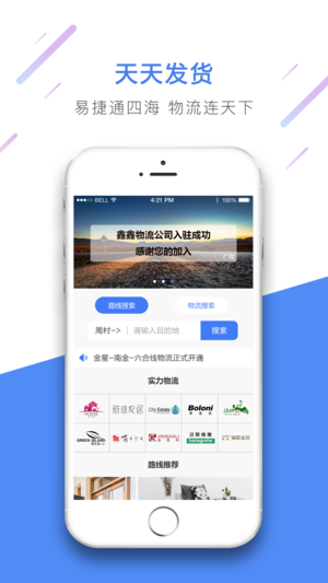 天天发货是一款基于圈而精心打造的物流服务类APP,涵盖物流信息、路线展示等多样功能。