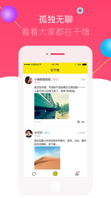 【浏览内容】所有内容以“我正在”开头,展现个人当前的活动