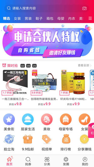 购物返利省钱利器,支持淘宝、天猫、聚划算等各大平台的返利,超火的九块九包邮返利,商城返利更是高达,全网返利之最!更有签到奖励,提现申请24小时内到账,注册使用完全免费!最省钱:精选全网热销宝贝,返利高达50%,每一分钱都不容错过!最简单:常去商城一触即达,搜索宝贝更加便捷,查询返利更为轻松!最好用:支持400多家商城购物返利,宝贝降价及时提醒,随时随地享受返利!