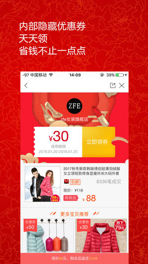 涵盖时尚服饰、鞋包、、新鲜、潮流彩妆与化妆品,以及品质优良且价格合理的居家用品、一线大牌、聚划算商品和淘宝月销过万的热销商品,尽在此处领取优惠券。