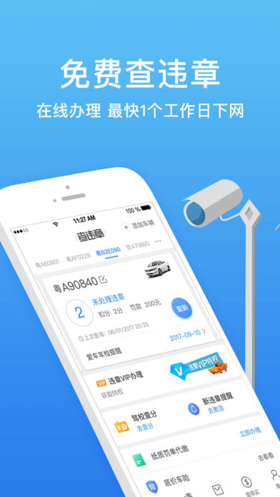 【查违章】覆盖全国360个城市的汽车交通违章快速查询,直连省市车管所,在线办理,助您节省30%的费用;
