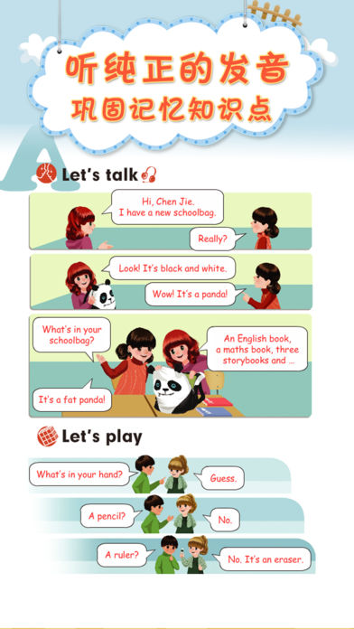 本APP专为《人教版PEP小学英语四年级》精心打造,是一本可随身携带的智能有声电子课本,与教材内容完全一致,使用iPhone或iPad,随时随地尽享学习乐趣。