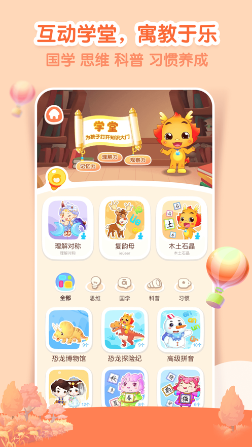【学堂】快乐启蒙:涵盖思维、国学、科学、习惯养成等多个知识领域,通过生动的互动内容,寓教于乐。