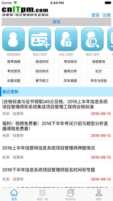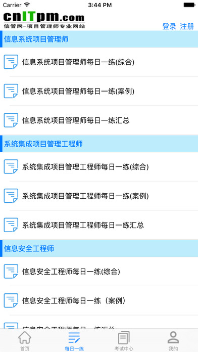 目前,信管网APP已涵盖信息系统项目管理师、系统集成项目管理工程师、信息安全工程师、网络工程师、信息系统监理师等多个考试科目,提供考试资讯、报考指南、考试大纲、考试报名、考试培训、每日一练、在线、历年真题、会员中心、视频课程等多样化服务。