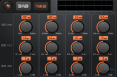 右侧的八个方块,上面四个方块可供选择软件预设的音效模式,如不满意,可按“自定义”自行设定,进入下方页面,设定完成后返回此页面,并按“我的音效(1、2、3)”进行保存。