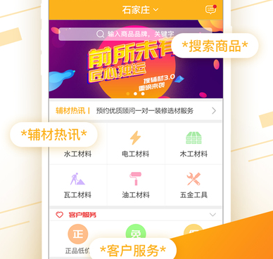 搜辅材APP专为用户提供装修材料信息而设计,旨在让您在购买装修辅料时,能够省钱、省力、省时、省心。如果您希望轻松愉快地完成装修,不妨赶紧下载搜辅材APP吧!