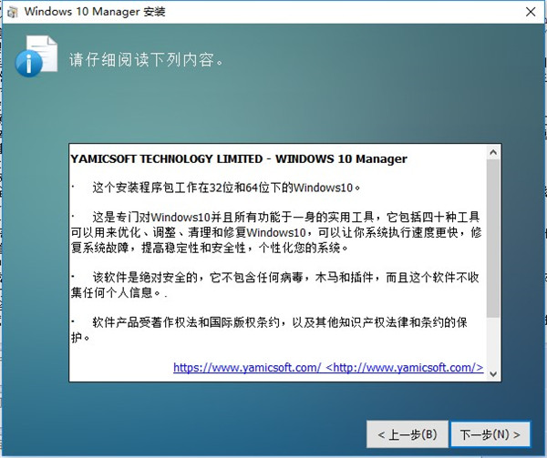 1、下载本软件,双击下载的Windows 10 Manager中文破解版“Windows 10 Manager”开始安装,点击下一步。