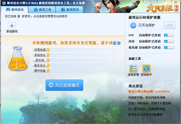 游戏优化大师九阴真经专版由盛大创新院倾力研发,为您提供专业的游戏优化服务: