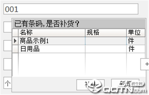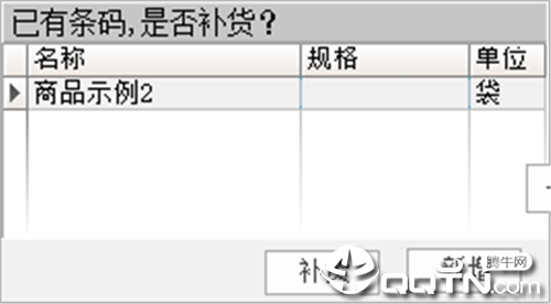 如果输入的条码已存在,则可进行补货操作。输入已存在的条码按回车后会弹出对话框: