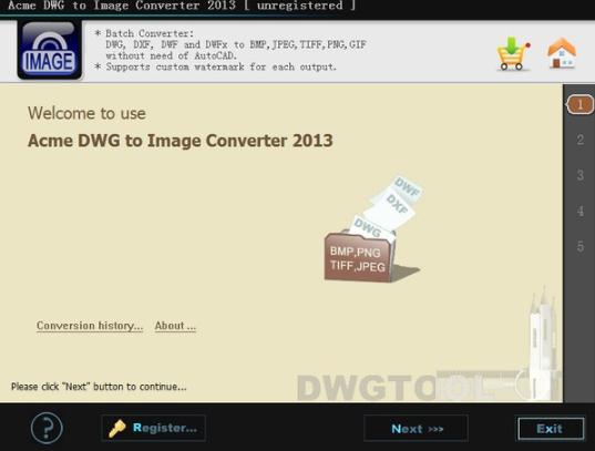 Acme DWG to Image Converter允许您直接将DWG转换为图像,DXF转换为图像,DWF转换为光栅图像,无需使用AutoCAD,它将DWG、DXF和DWF文件转换为光栅图像文件,快捷方便。