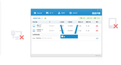 家庭WiFi密码泄漏,路由器被人蹭网,家里网络越用越慢、上网看视频越来越卡... 路由优化大师随时监控无线连接用户,让隔壁蹭网大叔无可遁形