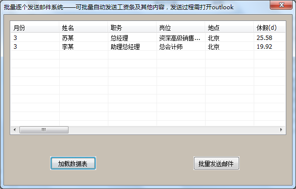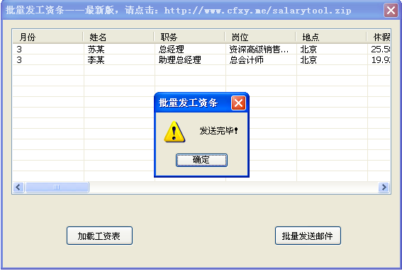 批量发工资条小工具是由推出的一款电子工资条助手,本软件利用微软的OUTLOOK来批量自动发送邮件,成功率比其他任何一款都高,是hr的好帮手,同时也可当作推广网站、网店、博客、论坛的营销利器。