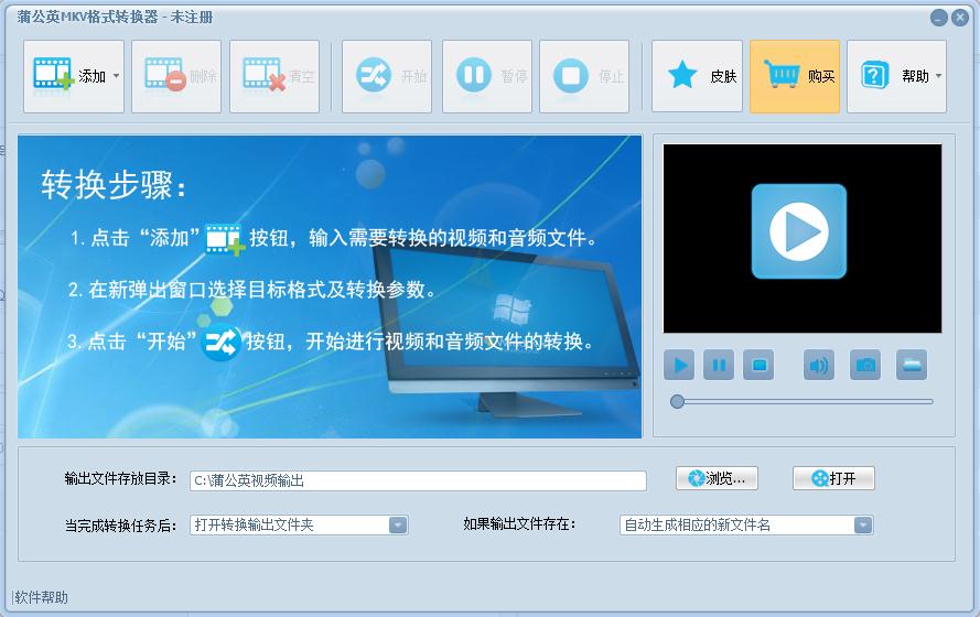 蒲公英MKV这款软件可以将时下各种流行的视频格式转换为MKV视频格式,也可以将MKV格式视频转换为各种常用的视频格式。同时软件可以批量操作,还支持转换完成后自动关机。