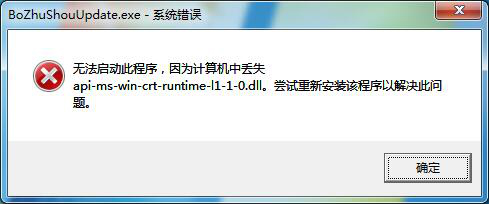二、错误:无法启动此程序,因为计算机中丢失api-ms-win-crt-runtime-|1-1-0.dll。尝试重新安装该程序以解决此问题。