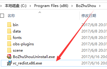 打开播助手安装路径(如:C:Program Files (x86)BoZhuShou)下的 vc_redist.x86.exe