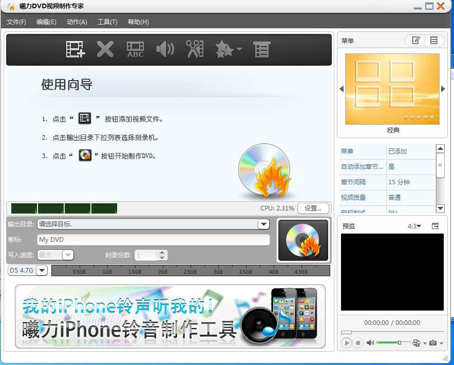 4、支持将iPhone格式的视频文件制作成DVD电影。