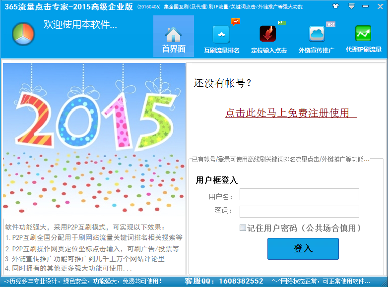 1.365流量点击专家软件是一款集和多种功能的软件,可以进行刷网站IP流量/来路流量等点击量,也可以用于快速提升网站关键词排名情况,部分原排名较好的关键词可以做到快速提升到搜索引擎首页的排名,同时可以将设置的词刷到搜索引擎相关搜索及下拉菜单关联词,更有一些神秘的竞价推广优化功能可供使用;而其他的软件绝大多是功能较单一的软件!
