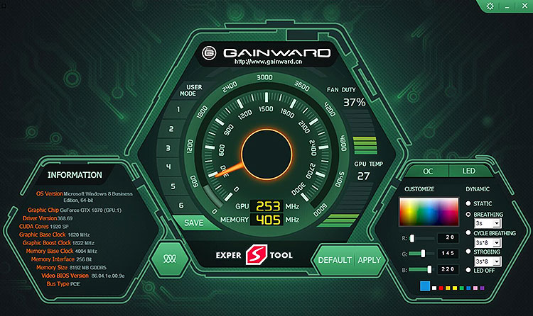 耕升ExperTool III是一款显卡调节的工具,用于检测显卡的实时动态,对您的显卡进行调节。本款软件是耕升为其专门推出的显卡而研发的效能调节工具,能够实时监控和调节显卡的频率、温度、风扇转速等信息,是耕升显卡高级用户的必备工具。软件较为小众,适合耕升显卡高级用户的必备工具。