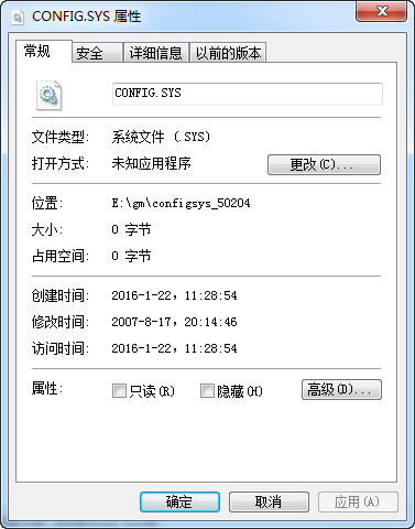 文件描述:CONFIG.SYS是包含在DOS(磁盘操作系统,Disk Operating System)中的一个文本文件命令,它告诉操作系统计算机如何初始化。多数情况下,CONFIG.SYS命令制定内存设备驱动和程序,以控制硬件设备;开启或进制系统特征;以及限制系统资源。CONFIG.SYS在autoexec.bat(自动批处理程序)文件执行前载入。由于CONFIG.SYS是一个文本文件,因此它可以使用文本编辑程序编辑。