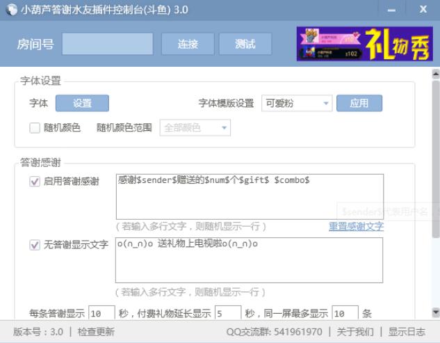 小葫芦答谢水友插件是一款非常棒的主播直播辅助插件工具。用户们可以根据自己的需要来进行各项设置,可以自动帮助主播致谢水友们送的礼物与弹幕,并且主播可设定每条答谢的时间,让你的主播方式更加轻松,需要的用户可以来下载使用!