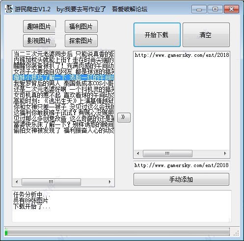 游民爬虫是一款是一款专门为游民星空打造的图片下载工具,可以自动采集游民星空网站中的各种趣味图片、福利图片、影视图片和图片并且下载,让您无需一张张图片下载保存。