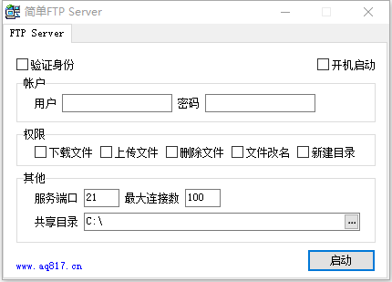 虽然体积小巧,但是功能全面,可以设置权限:身份验证、账户密码、ftp权限设置、服务端口、最大连接数、ftp文件目录等。是一款非常值得珍藏的ftp服务器软件。