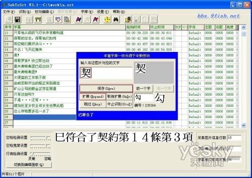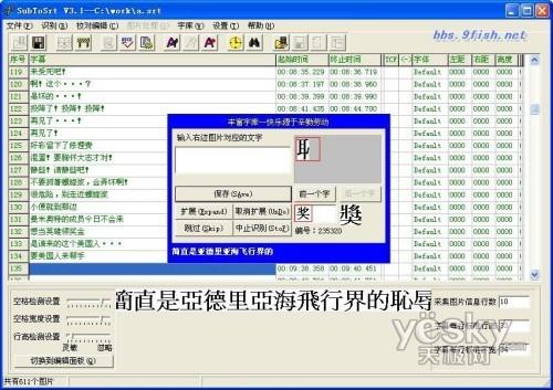 开始后,SubRip就会开始搜索VOB中的字幕流。开始时会有提示,可以选择正确的OCR颜色。每种字母第一次出现的时候会要求你输入同样的字母,之后再次出现同样的字母软件就会自动识别。全文识别结束后,SubRip还提供“Post OCR Correctn”功能对识别文件进行自动校正。