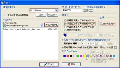 · 打开文件目录->选定sub->语言数据流选Chinese->右面操作里选字幕图片保存为4bit的BMP文件,以及在加时间和尺寸上打勾->开始